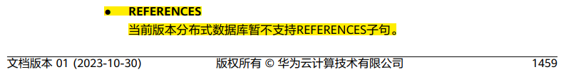 参考文档 云数据库 GaussDB 8.102 主备版开发者指南.pdf----P1509 云数据库 GaussDB 8.1 分布式版开发指南.pdf----P1461 |