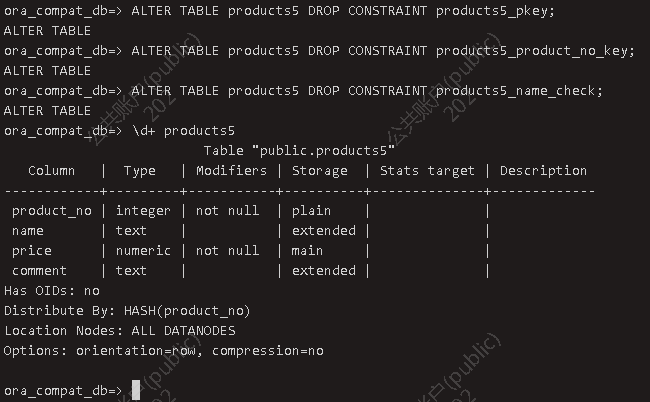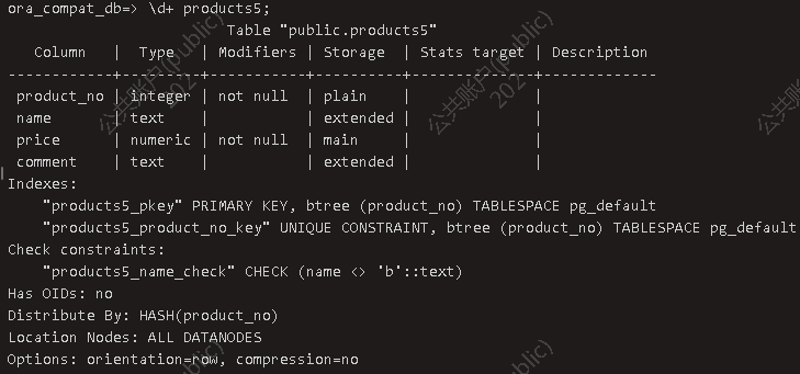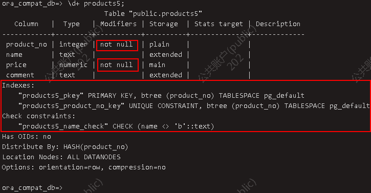 约束的查看 元命令查看表属性