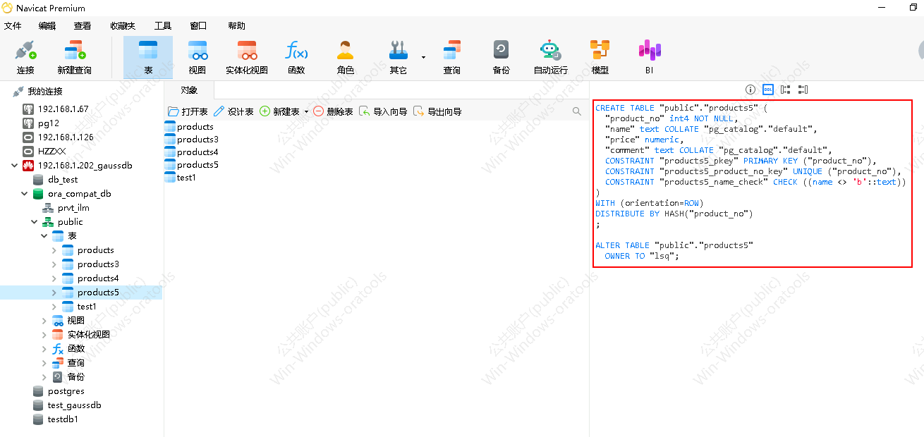 数据库管理软件查看建表语句