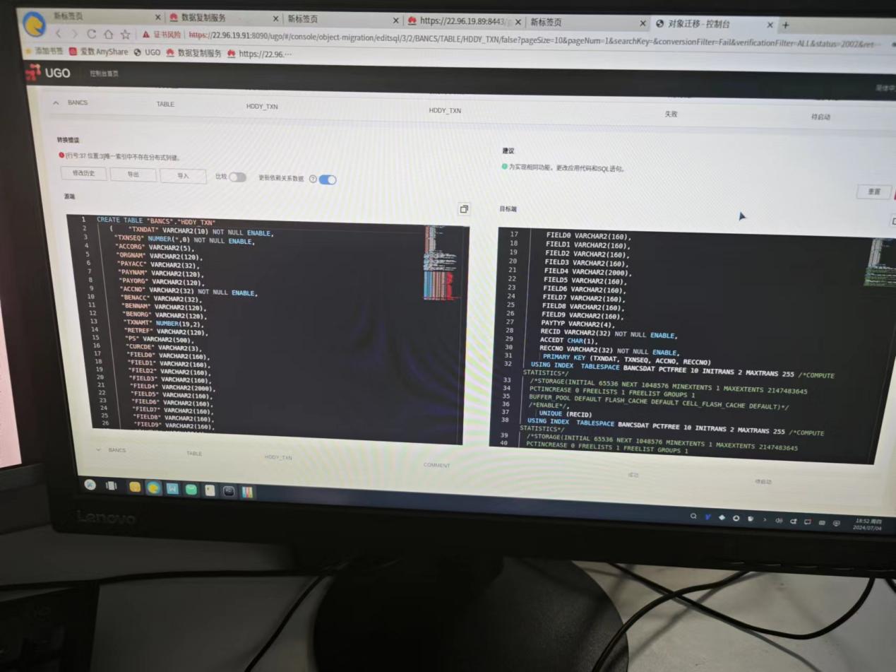 唯一索引不存在分布列键 如果目标端是分布式环境,唯一键必须是分布键的一部分。转换报错如下: