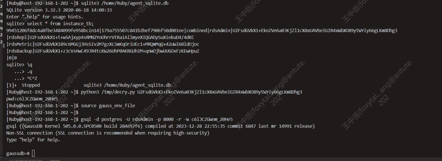 获取密钥并解密RDSAdmin密获案例分享首先登录服务器 sqlite3 /home/Ruby/agnet_sqlite.db select * from instance_tb;