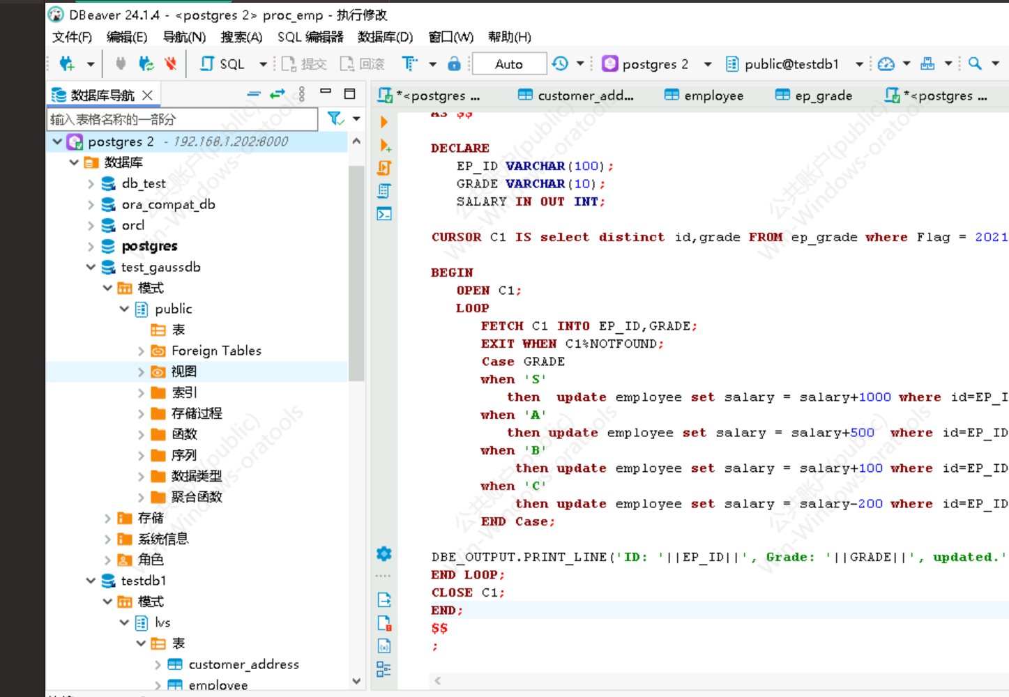 【实施分享】Gaussdb华为云实施分享发表时间:2024-08-15 16:44 目录 第1章、 Gaussdb实施技术分享 1.1、 解决DRS无法发起全量+模式任务的问题 1.2、 使用DRS迁移后表数量不一致的问题 1.3、 数据源如何适配方案 1.4、 dbever工具连接gaussdb案例分享 1.5、 获取密钥并解密RDSAdmin密获案例分享 1.6、 drs-meta库因为cgroup无法启动案例分享 1.7、 GaussDB应用磁盘IO类故障在线诊断 1.8、 Redis应用网络时延类故障在线诊断 1.9、 一场由fork引发的超时,让我们重新探讨了Redis的抖动 1.10、 DRS (Database Replication System) 连接Oracle数据库出现网络连接异常的问题 15 1.11、 drs-FATAL terminating connection due to administrator command 1.12、 ugo迁移注意事项 1.13、 Drs使用过程中遇到问题案例 1.14、 使用 psycopg2 连接高斯数据库报错 failed: none of the server‘s SASL Gaussdb实施技术分享解决DRS无法发起全量+模式任务的问题问题背景: 在使用华为云DRS(Data Replication Service)进行Oracle到GaussDB的数据库迁移时,遇到了无法发起全量+模式任务的问题。本文将详细描述问题现象、分析过程及解决方案。 问题分析: 1.问题现象 DRS版本:2.23.07.263 源端:Oracle 19c 目标端:GaussDB分布式8.3.1 无法发起全量+模式的迁移任务。 2.问题分析 进入drs-node服务器。查看具体drs任务日志 /drs/run/{job-id}/log/relay.info.log 3.查看任务日志 进入DRS节点服务器,查看具体的DRS任务日志: /drs/run/{job-id}/log/relay.info.log 4.日志分析 在日志中观察到thread2的获取对应SCN号的日志一直失败。最初怀疑是由于归档被清理导致的问题,但即使注释了清理归档的任务后,问题依然存在。 5.特殊环境分析 经过进一步调查,发现客户的Oracle环境是从RAC改造出的单机数据库,thread2处于启用状态,但对应的thread2日志已经被删除。是问题的关键所在。 使用DRS迁移后表数量不一致的问题问题背景: 在使用华为云DRS(Data Replication Service)进行Oracle到GaussDB的数据库迁移时,遇到了源库和目标库表数量不一致的问题。本文将详细描述问题现象、原因分析及解决方案。 问题现象: 源库schema下共有3858张表。 其中12张表因为保留字、中文表名问题不迁移;1张表因为表定义超长,在目标端服务器上创建。 故在目标端,理论上应该有3846张表。 但是使用\d命令发现只有3845张表。 查询pg_tables则显示有3846张表。 问题分析: 在目标端使用\d命令时,发现无法匹配到plan_table表,仅在全词匹配下,才能发现该表。 原因分析: \d命令在默认情况下是进行模糊匹配的,它可能不会列出所有表,尤其是那些名称包含特殊字符或不常见单词的表。plan_table表可能因为名称特殊或与\d命令的默认匹配规则不兼容,因此在\d命令下未被列出。 解决方案: 1.忽略plan_table表即可。 2.使用更精确的查询方法,如pg_tables,来验证表的数量。 数据源如何适配方案:集中式连接 对于集中式的GaussDB集群,可以使用如下JAVA JDBC URL格式进行连接: Jdbc:postgresql://IP1:port1, IP2:port2, IP3:port3/appdb?targetServerType=master&socketTimeout=5&connectTimeout=5&loginTimeout=3defaultRowFetchSize=1000 参数解释: targetServerType:指定连接的目标服务器类型,可以选择 socketTimeout:套接字超时时间(秒),用于读取数据。 oconnectTimeout:连接超时时间(秒),用于建立连接。 ologinTimeout:登录超时时间(秒),用于认证过程。 defaultRowFetchSize:每次从结果集中获取的行数,默认为0表示一次性获取所有行,可能引起内存溢出(OOM)。 分布式连接 对于分布式GaussDB集群,可以使用如下JAVA JDBC URL格式进行连接: Jdbc:postgresql://IP1:port1, IP2:port2, IP3:port3/appdb?autoBalance=true&socketTimeout=5 &connectTimeout=5&loginTimeout=3defaultRowFetchSize=1000 参数解释: autoBalance:是否启用自动平衡连接,可以选择 true:轮询模式。 priorityN:前N个为主优先级,如果这些不可用,则使用其他节点。 shuffle:随机选择。 false:关闭自动平衡功能。 orefreshCNIpListTime:定义JDBC客户端刷新协调节点列表的时间间隔,默认为10秒。 Python 连接华为云GaussDB方案 示例代码: vi test_gaussdb.py ## psycopg2安装方式见:https://support.huaweicloud.com/distributed-devg-v8-gaussdb/gaussdb-12-0154.html # -*- coding: utf-8 -*- import psycopg2 import os # 从环境变量中获取用户名和密码 user = "root" password = "ATT@2022" # 创建连接对象 conn=psycopg2.connect(database="postgres", user=user, password=password, host="192.168.1.23", port=8000) cur=conn.cursor() #创建指针对象 # 创建表 cur.execute("CREATE TABLE student(id integer,name varchar,sex varchar);") # 批量插入数据 stus = ((4,'John','M'),(5,'Alice','F'),(6,'Peter','M')) cur.executemany("INSERT INTO student(id,name,sex) VALUES(%s,%s,%s)",stus) # 获取结果 cur.execute('SELECT * FROM student') results=cur.fetchall() print (results) # 提交操作 conn.commit() # 插入一条数据 cur.execute("INSERT INTO student(id,name,sex) VALUES(%s,%s,%s)",(7,'Lucy','F')) # 回退操作 conn.rollback() # 关闭连接 cur.close() conn.close() 注意事项: 其他注意 1、当密码中包含@等特殊符号,密码无法被识别问题 使用unicode编码规避密码特殊字符,例如 @ 为 \%40 2、Pycopg2非Gaussdb原生导致出现SASL 原生Pycopg2密码校验默认是md5,而高斯使用sha256。需要使用高斯的原生pycopg2,注意全部替换相关lib dbever工具连接gaussdb案例分享Dbever是一款基于Java的通用型数据库客户端工具,支持多种数据库类型。为了确保最佳的兼容性和性能,建议使用与您的数据库版本相匹配的Java版本和专用的数据源驱动。例如,Dbever 24.1.2版本需要Java Development Kit (JDK) 17,而从2